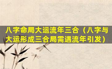 在八字命理学中,大运和流年代表着人生的运势变化。三,合。指的 🐧 是八字中三个五行相生的关系 🦆 而大运流年三合是指大运和流年与八字中的三个五行相生的情况