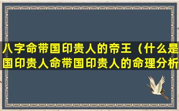 命带国印 🌷 贵人的命理分析 🐋