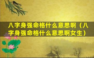 在八字命 🌴 理中,身强指的是个人出生时日主(即出生日的五行)旺 🐅 盛命。格指的是。一个人的运势和性格特征八字身强命格是指: