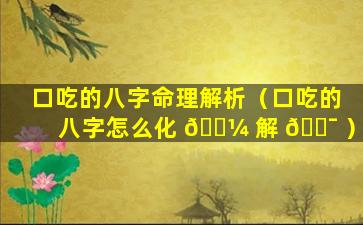 口吃的八字命理解析(口吃的八字怎么化 🐼 解 🐯 )