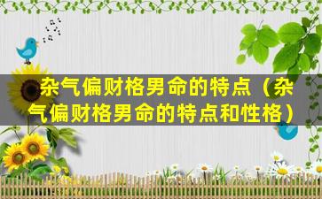 杂 🐅 气偏财格男命的特点(杂气偏财格 🌹 男命的特点和性格)