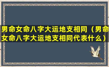 男命女命八字大运地支 🌷 相同(男命女命八字 🐦 大运地支相同代表什么)