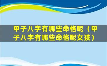 甲子八字有哪些命格呢 🐡 (甲子八字有哪些 🦅 命格呢女孩)
