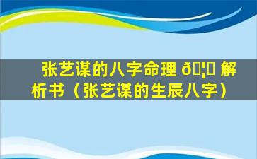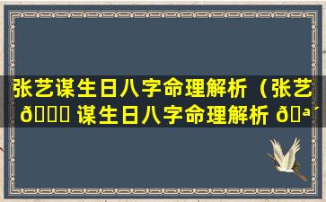 张 🐯 艺 🐟 谋生辰八字命理解 🐋 析