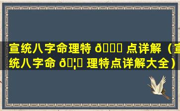 2、宣 🦄 统八字 🌺 命理特点详解大全