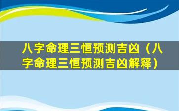 八字 🦍 命理三恒 🍀 预测吉凶解释 🦅
