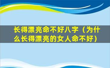 “长得漂亮命不好八字”的说法是一种迷信的说法,缺乏科 🌲 学依据。