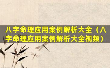八字命理应用案例解析大全(八字命理 🌲 应用案例解析大全视频)