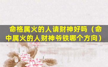 请财 🐳 神是一种民间信仰,与命理学有关命理学是。中,国。传,统。文化中的 🦈 一种预测术认为人的命运是由天生的八字所决定的其中命格属火是指八字中火元素偏旺的人