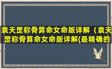 袁天罡称 🐕 骨算命女命 🐴 版详解