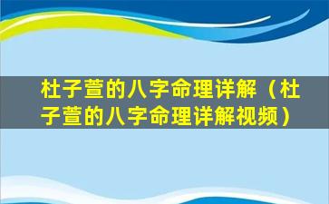 杜子萱的八 🌻 字命理详解(杜子萱的八字命理详解视频)