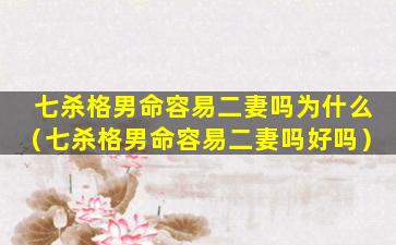 七杀 🦊 格 🦍 男命容易二妻吗 🌷 ?
