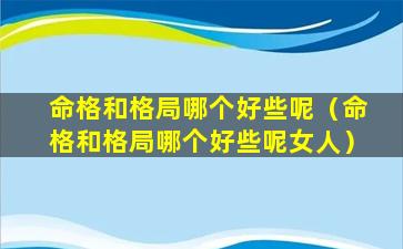 哪个更好一般来说,命格与格 🦍 局兼 🌳 备的女人更好。