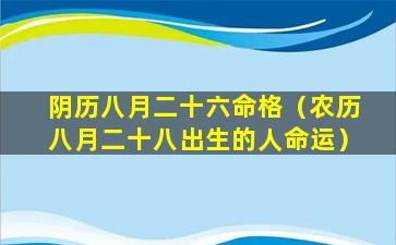 阴历八月二十六日出生之人 🐳 的命格 🍀