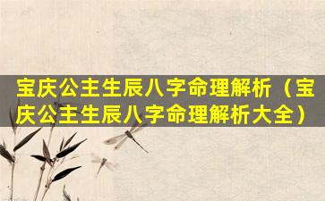 宝庆公主生辰 🌷 八字