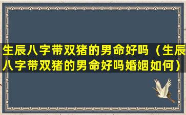婚姻如何?生辰八 🐶 字带双猪的男命婚姻好坏,需要看八字中其他因素 🐦 的影响。