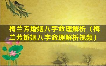 2、梅兰芳婚姻八字命理解析 🦊 视频