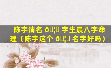 含义美好:"陈"字有古 🌵 老、繁盛之意,"宇"字有、宇,宙天地之意寓 🐼 意美好宽广。