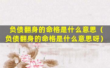 负 🕷 债翻身的命格是一种命理术语,指命,主,在,早年可能 💮 会 🐒 经历较大的经济困难和债务但通过自身的努力和机遇最终可以扭转局面实现财富的积累和债务的清偿。
